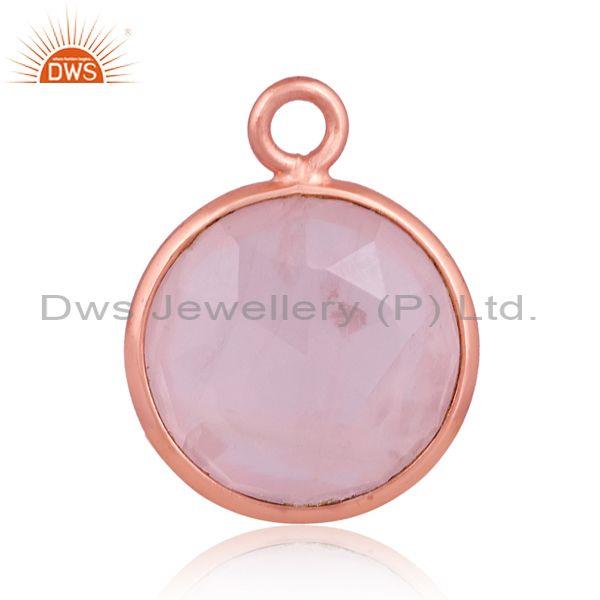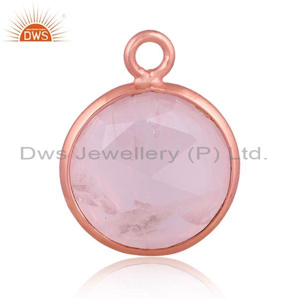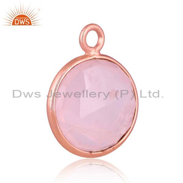 Rose Quartz Set Rose Gold On Sterling Silver Round Pendant
