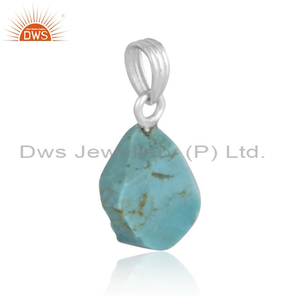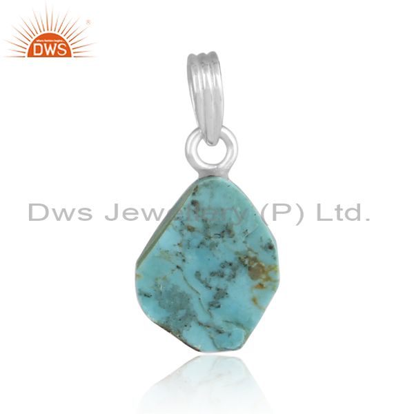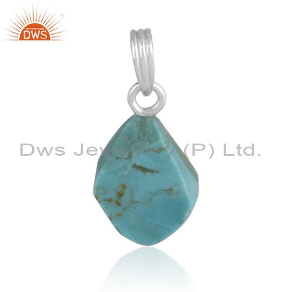 Rough Cut Arizona Turquoise Set Fine Sterling Silver Pendant