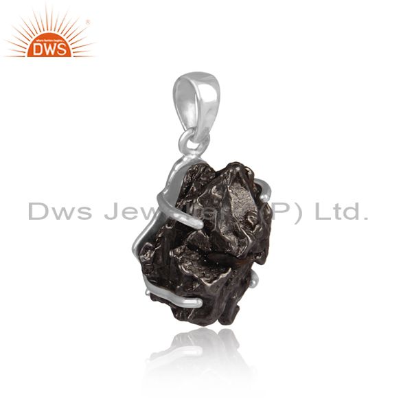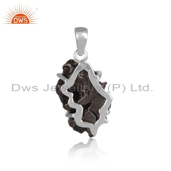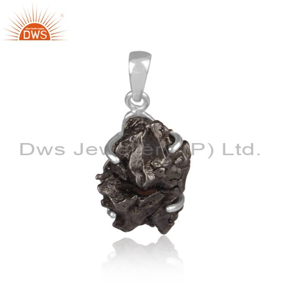 Rough Cut Meteorite Set Fine 925 Silver Abstract Pendant