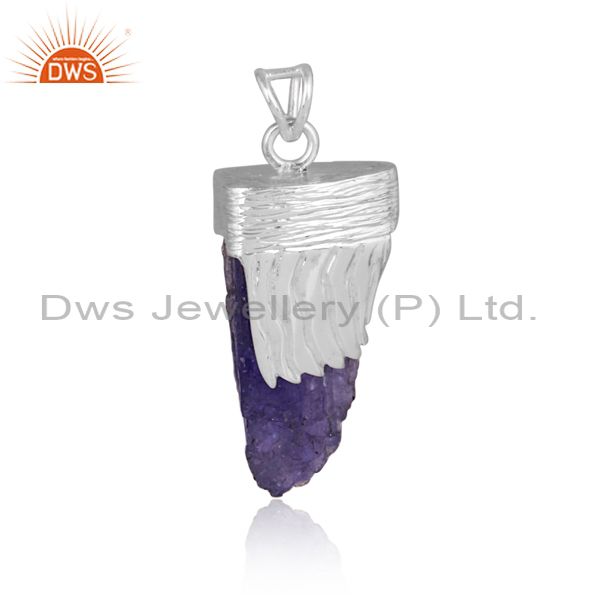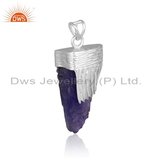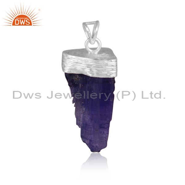 Rough Cut Tanzanite Set Fine Silver Fancy Designer Pendant