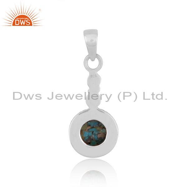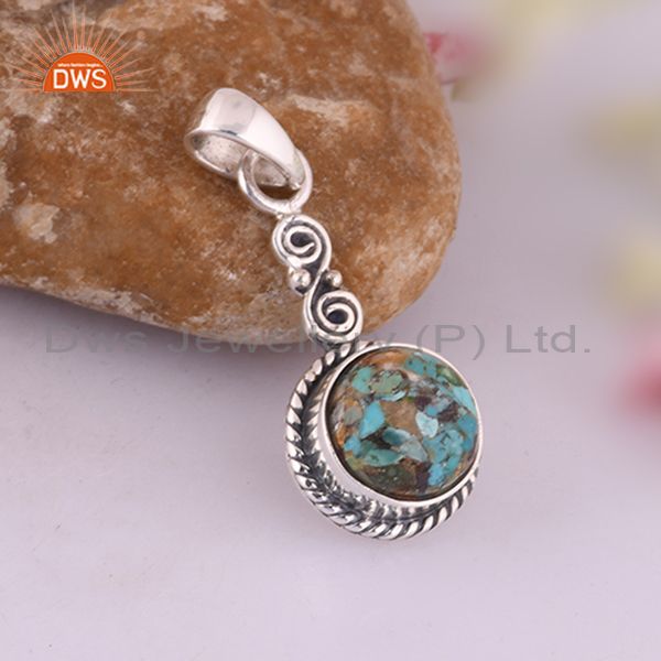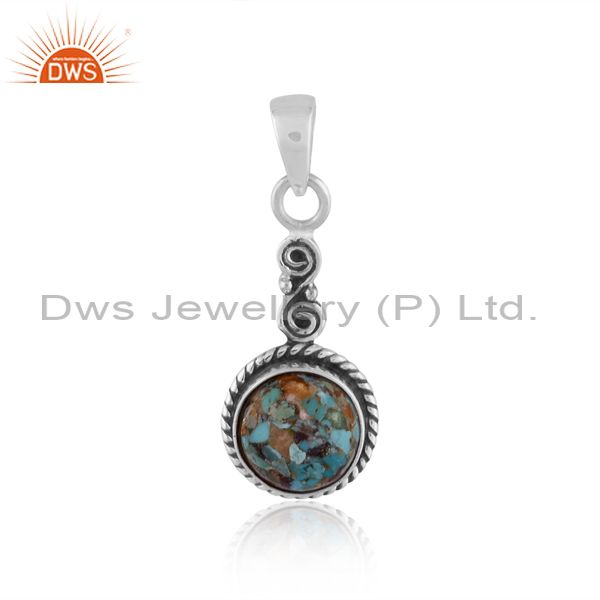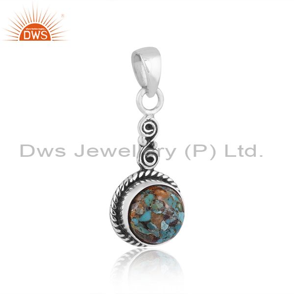 Round Boulder Turquoise Set Oxidized Sterling Silver Pendant