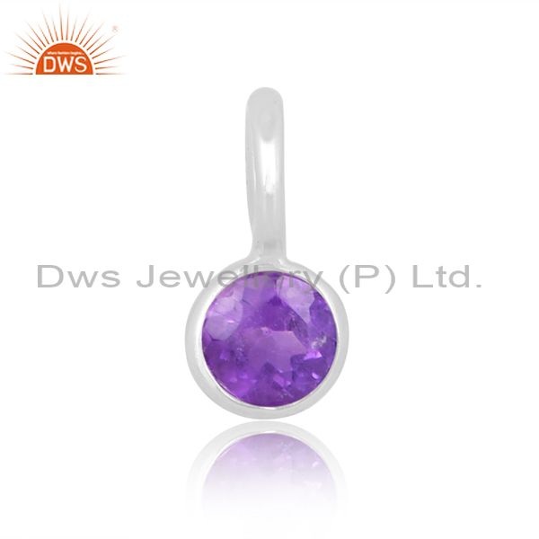Round Cut Amethyst Set Fine 925 Sterling Silver Pendant