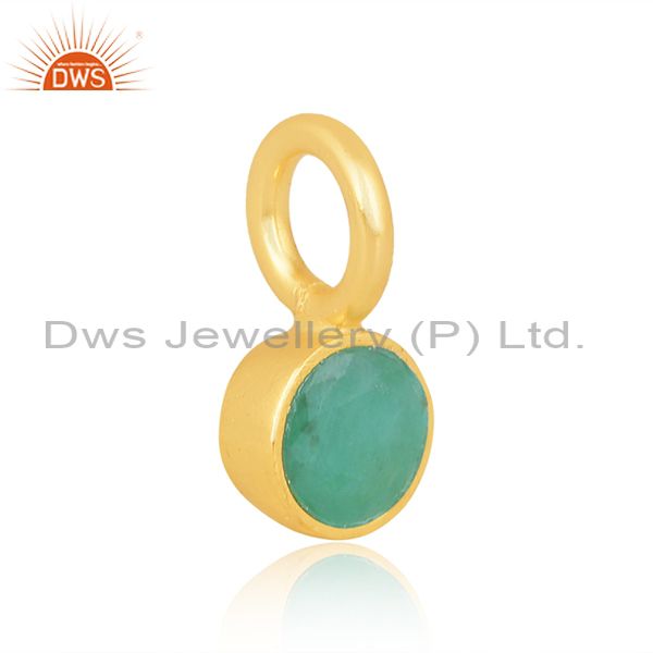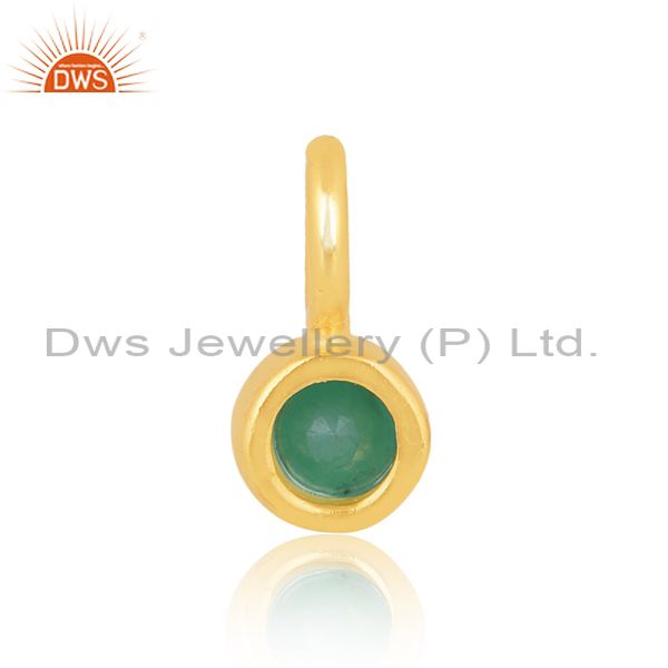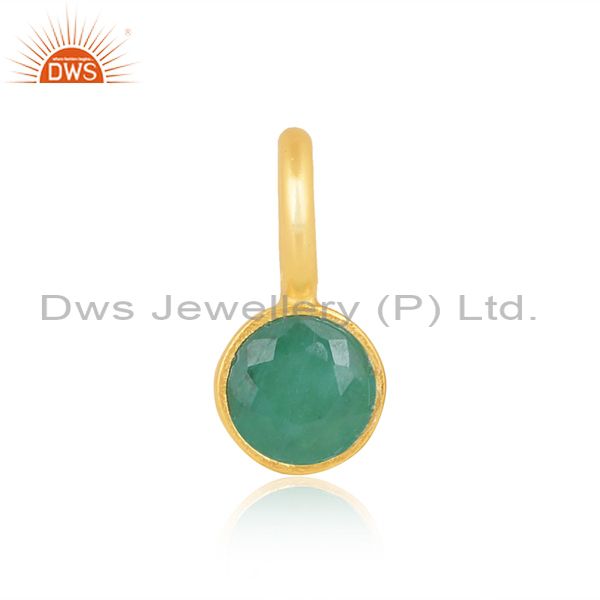 Round Cut Emerald Set Gold On 925 Silver Statement Pendant