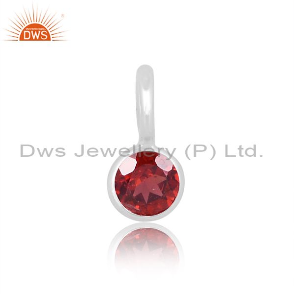 Round Cut Garnet Set Fine Sterling Silver Handmade Pendant