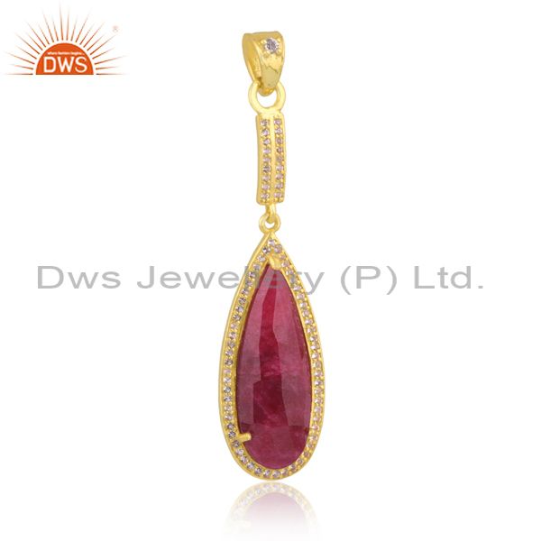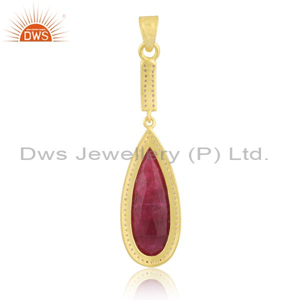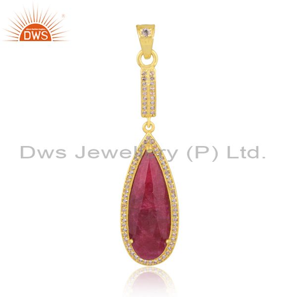 Ruby And White Topaz Set Gold On 925 Silver Classic Pendant