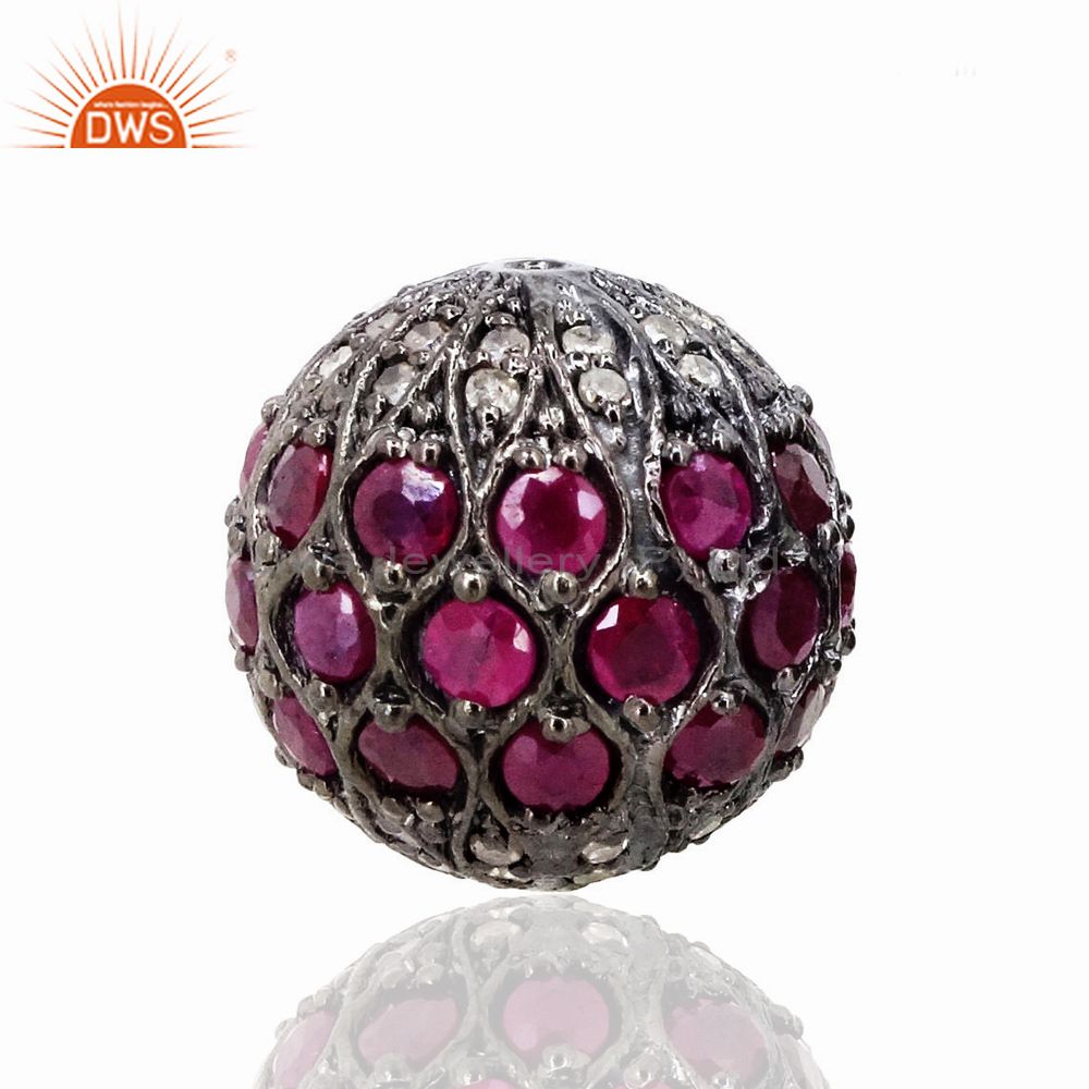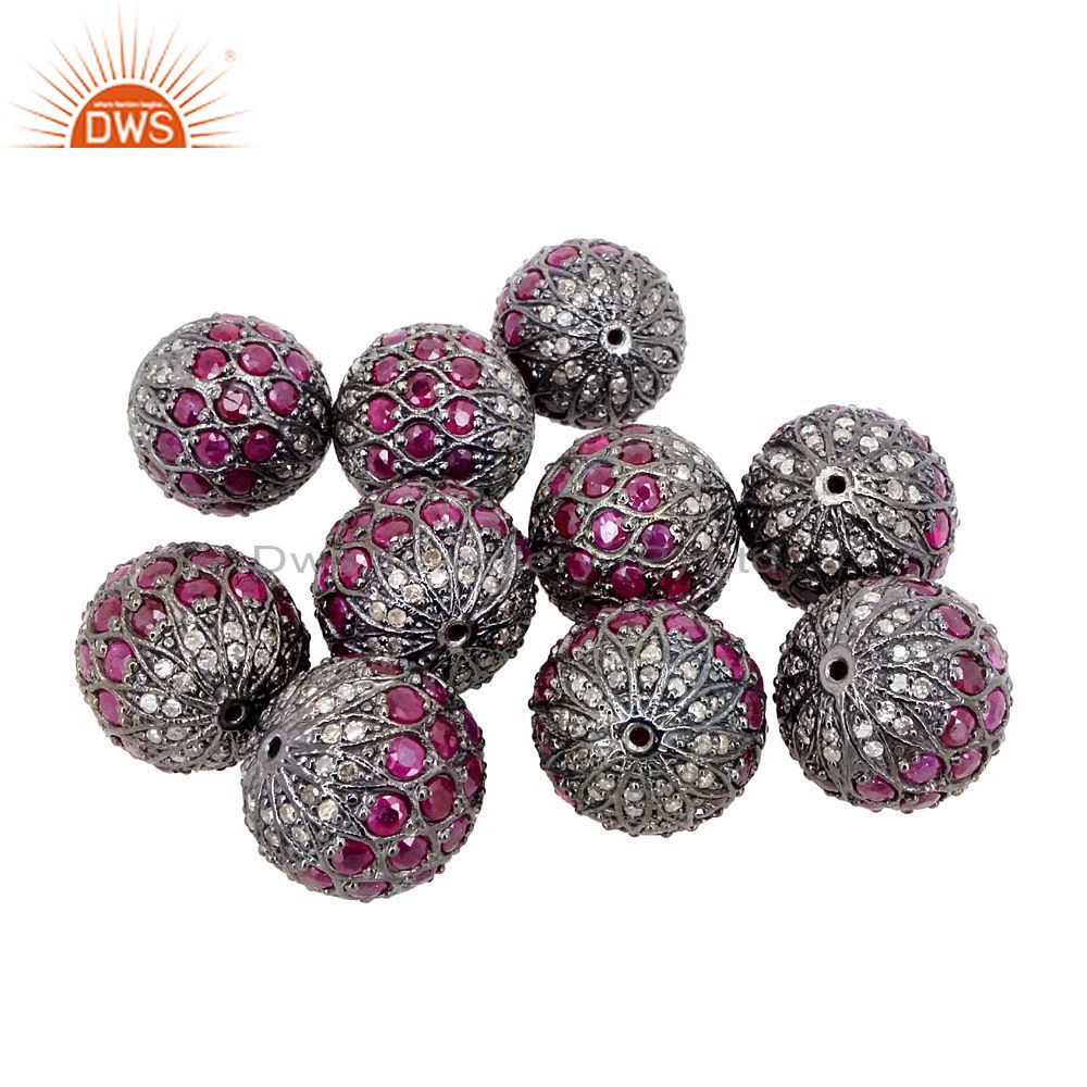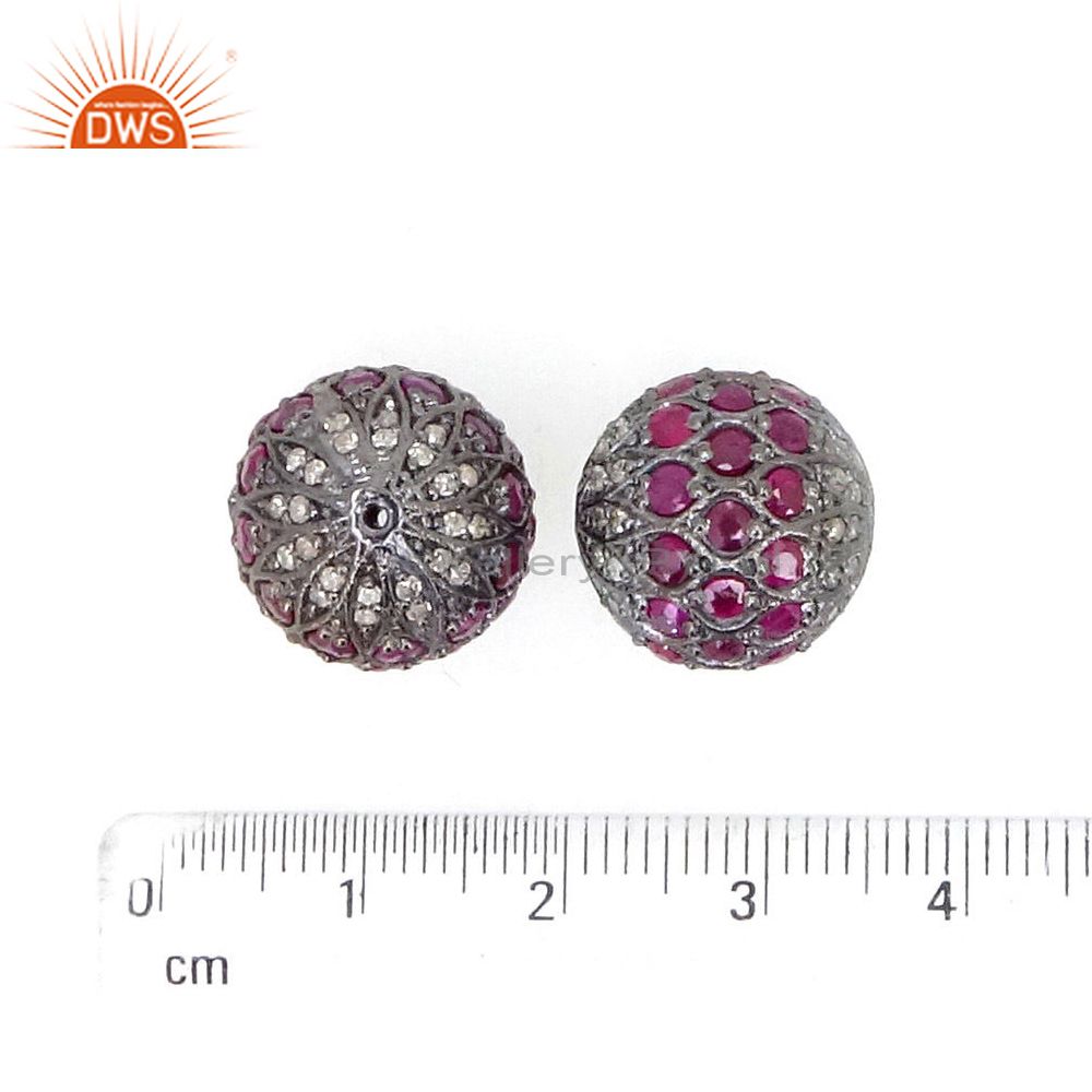 Ruby Gemstone Bead 925 Sterling Silver Spacer Ball Finding Jewelry 15Mm