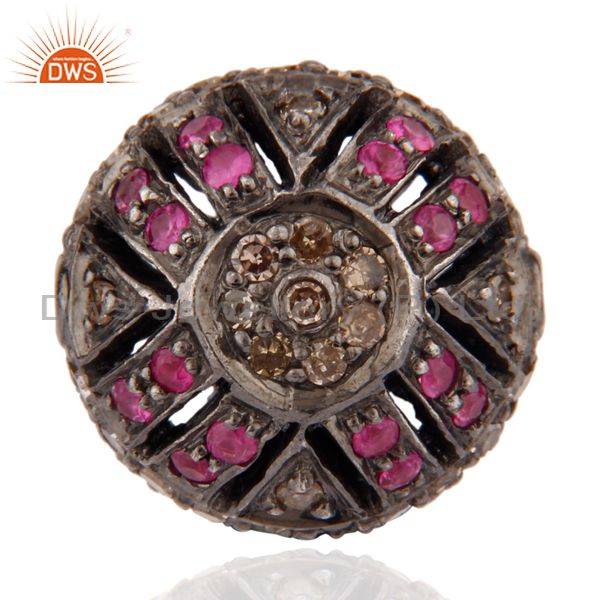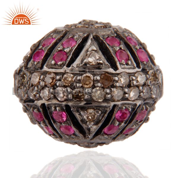 Ruby Gemstone Pave Diamond 925 Sterling Silver Round Bead Finding jewelry