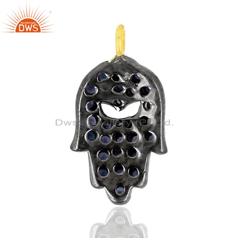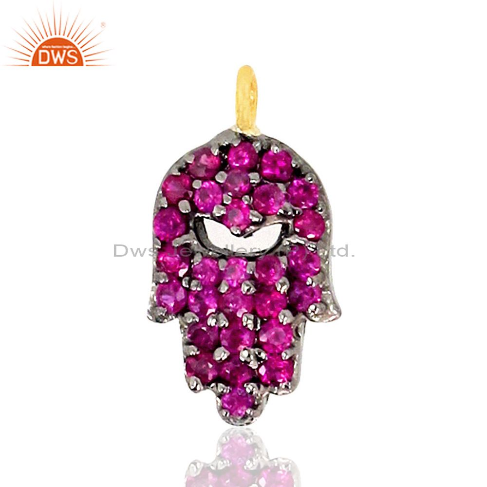 Ruby Hamsa Hand Charm Pendant 92.5 Sterling Silver 14K Gold Plated Jewelry