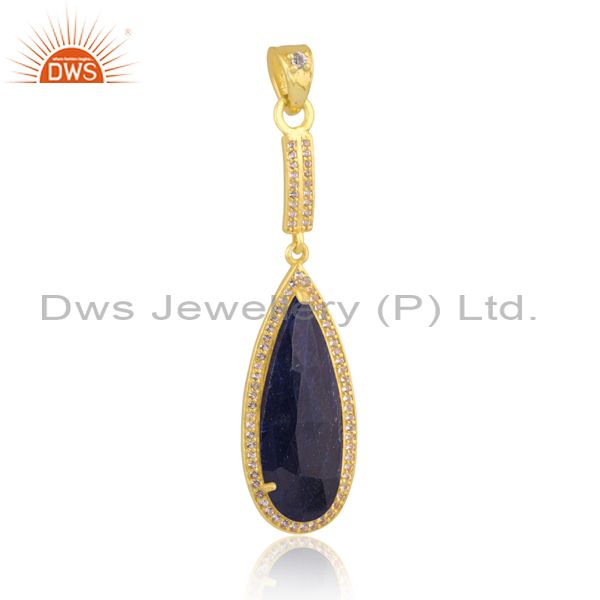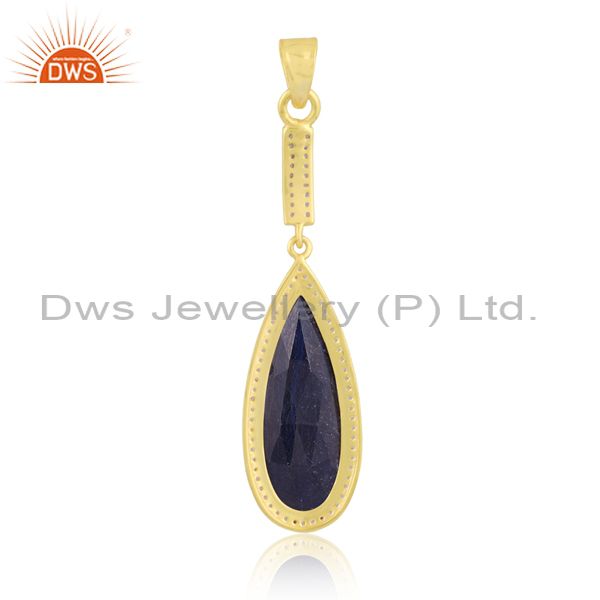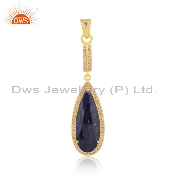 Sapphire And White Topaz Set Gold On Silver Classic Pendant