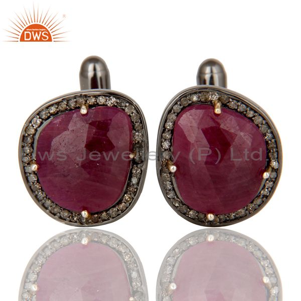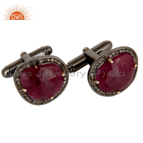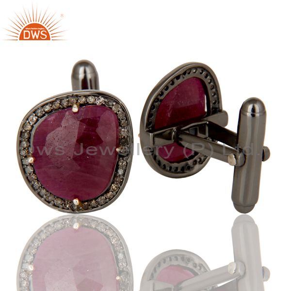 Solid 14K Yellow Gold Pave Set Diamond And Ruby Gemstone Mens Cufflinks