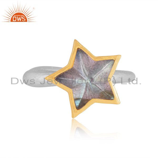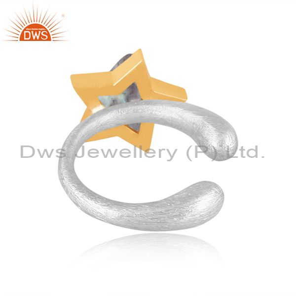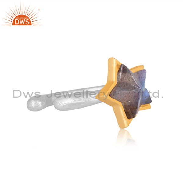 Star Shaped Labradorite Set Gold On Fine 925 Silver ear Cuff