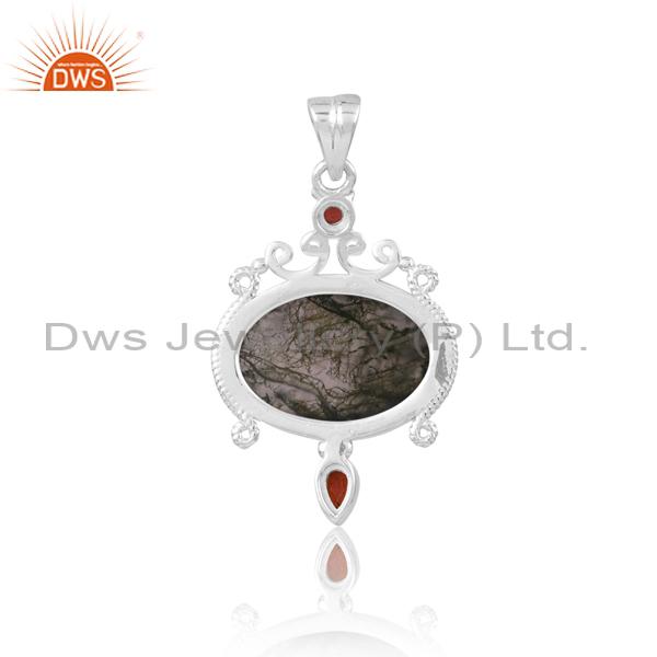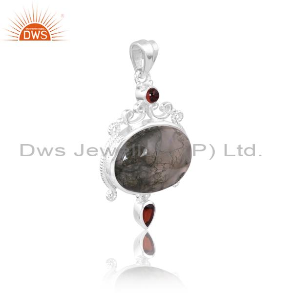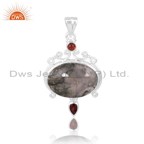 Stunning Garnet Pendant With Moss Agate Gemstone