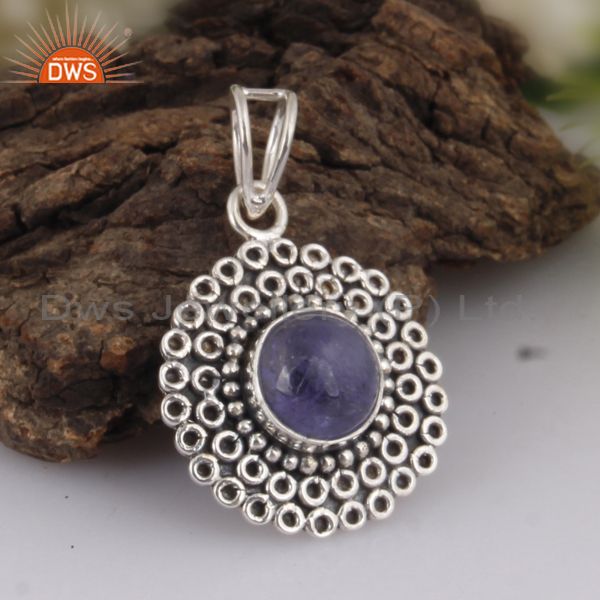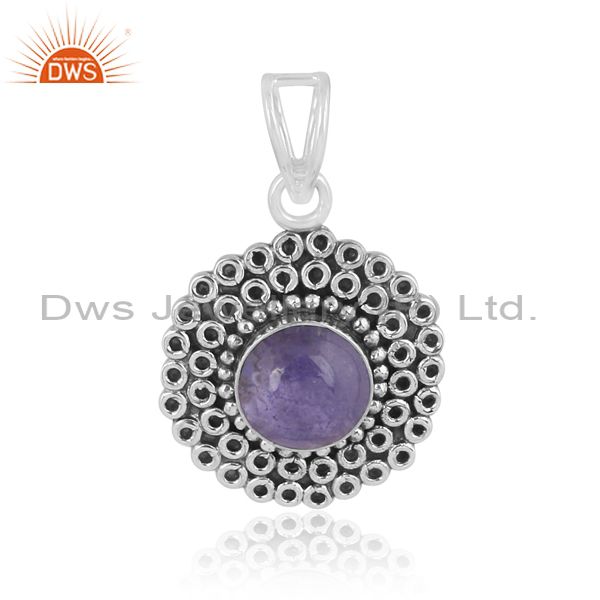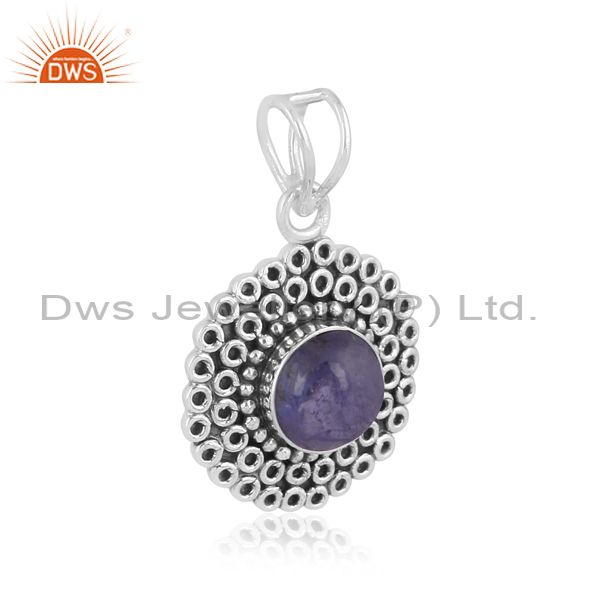 Tanzanite Set Oxidized 925 Silver Handmade Round Pendant