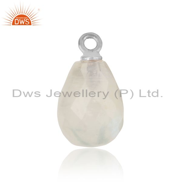 Trendy Handcrafted Rainbow Moonstone Jewelry Charm In Fine Silver