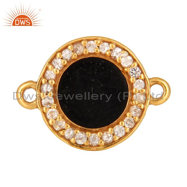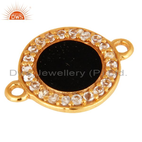 White Topaz Connector 14K Gold Plated Sterling Silver Black Enamel Findings