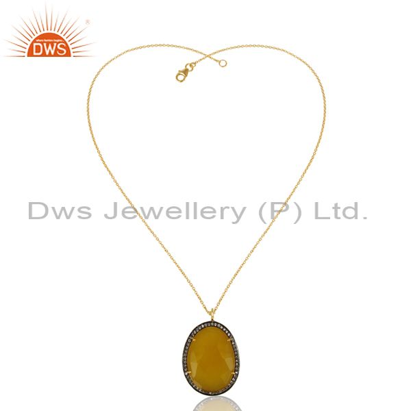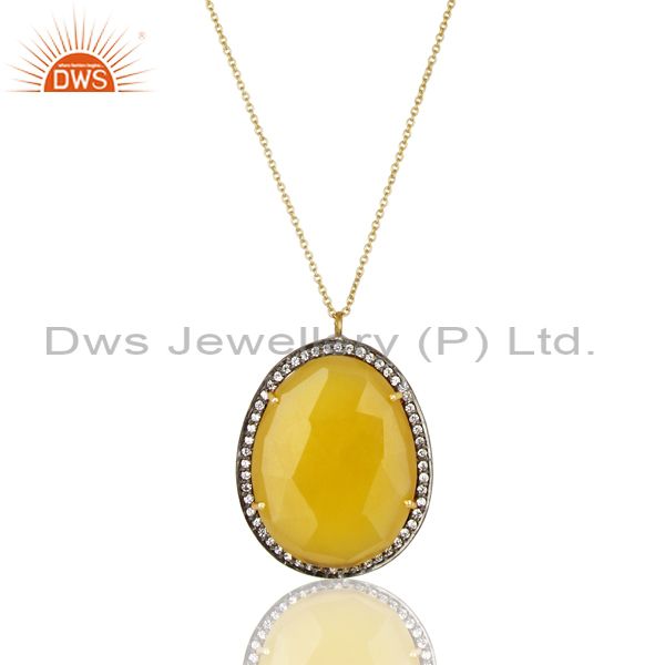 14K Gold Plated 925 Sterling Silver Dyed Chalcecony Zircon Prong Chain Pendant