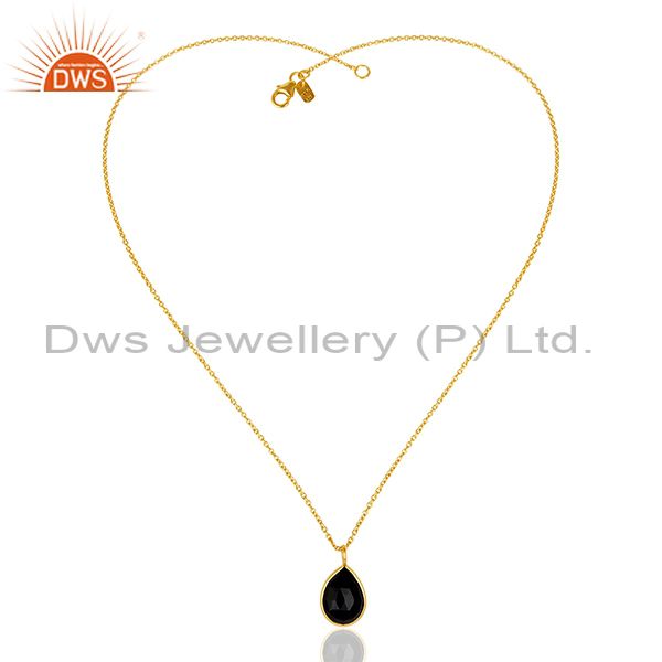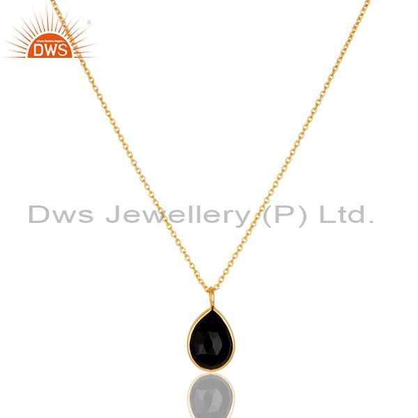 14K Gold Plated 925 Sterling Silver Handmade Black Onyx Bezel Set Chain Pendant