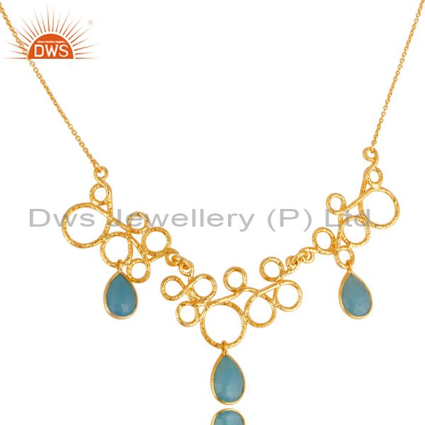 14K Gold Plated 925 Sterling Silver Handmade Dyed Chalcedony Designer Necklace