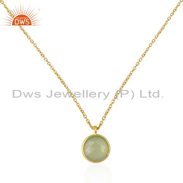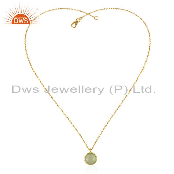 14K Gold Plated 92.5 Sterling Silver Prehnite Chalcedony Gemstone Pendant