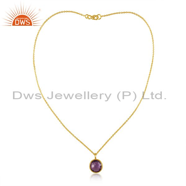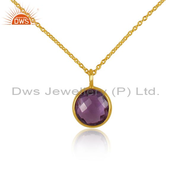 14K Gold Plated 925 Sterling Silver Round Amethyst Bezel Set Chain Pendant