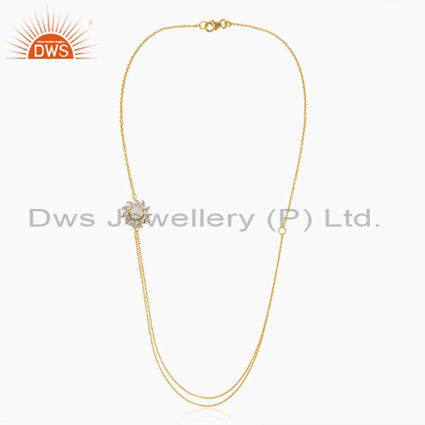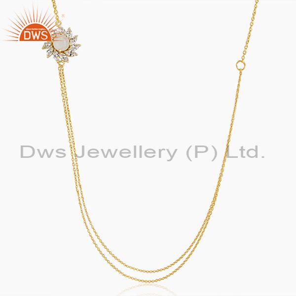 14k Gold Plated Brass Floral Design Moonstone 18inch Chain Necklace Wholesale