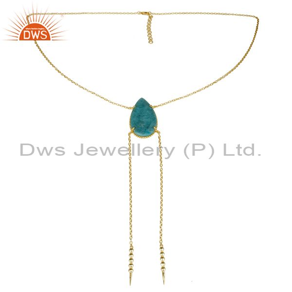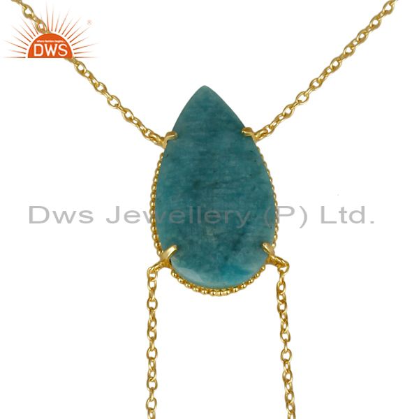 14K Gold Plated Handmade Pear Cut Natural Amazonite Chain Link Necklace