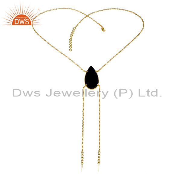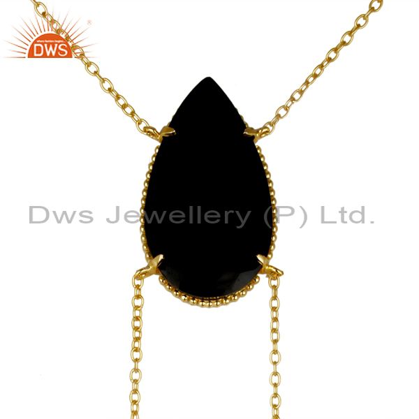 14K Gold Plated Handmade Pear Cut Natural Black Onyx Chain Link Necklace
