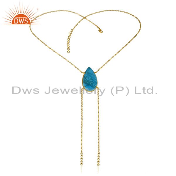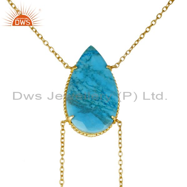 14K Gold Plated Handmade Pear Cut Natural Turquoise Chain Link Necklace