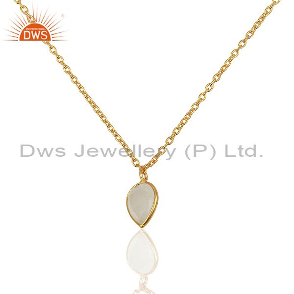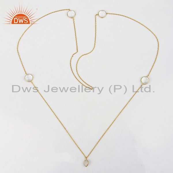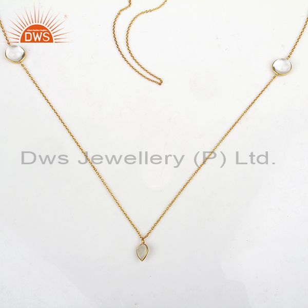 14K Gold Plated Rainbow Moonstone & Crystal Quartz 32 Inch Chain Brass Necklace
