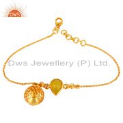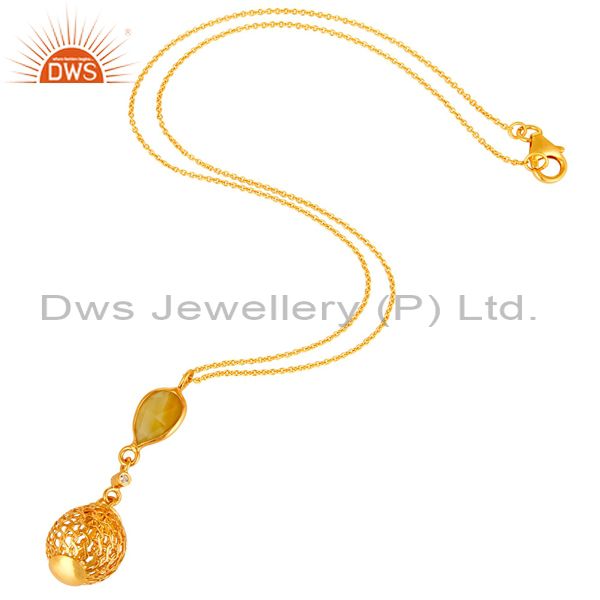 14K Gold Plated Silver Yellow Chalcedony And White Topaz Pendant With Chain