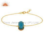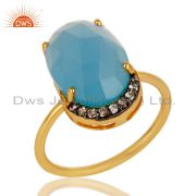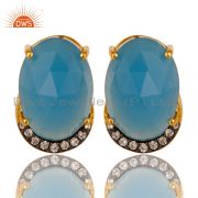 14K Gold Plated Sterling Silver Blue Chalcedony Designer Pendant With Chain