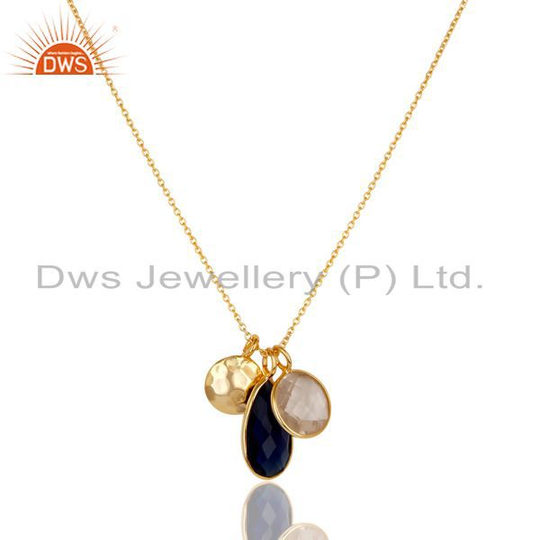 14K Gold Plated Sterling Silver Blue Corrundum & Crystal Quartz Chain Pendant