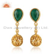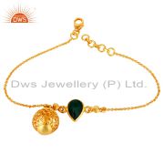 14K Gold Plated Sterling Silver Green Onyx And White Topaz Pendant With Chain