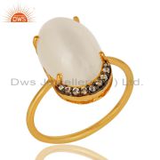 14K Gold Plated Sterling Silver Prong Set White Moonstone And CZ Pendant Chain