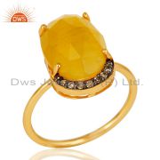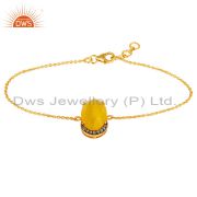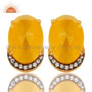 14K Gold Plated Sterling Silver Yellow Moonstone Designer Pendant With Chain