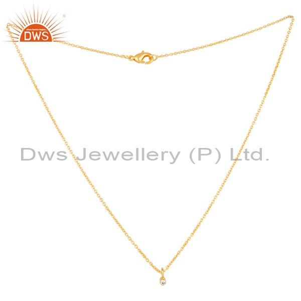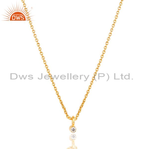 14K Gold Plated Traditional White Zirconia Design Brass Chain Pendant Necklace