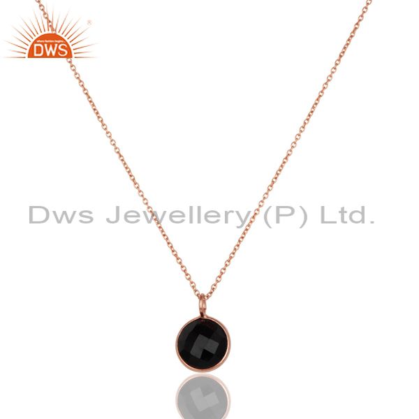 14K Rose Gold Plated 925 Sterling Silver Black Onyx Bezel Set Chain Pendant