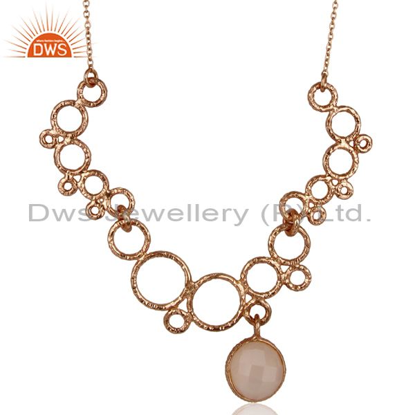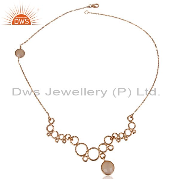 14K Rose Gold Plated Sterling Silver Dyed Chalcedony Gemstone Chain Necklace