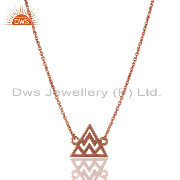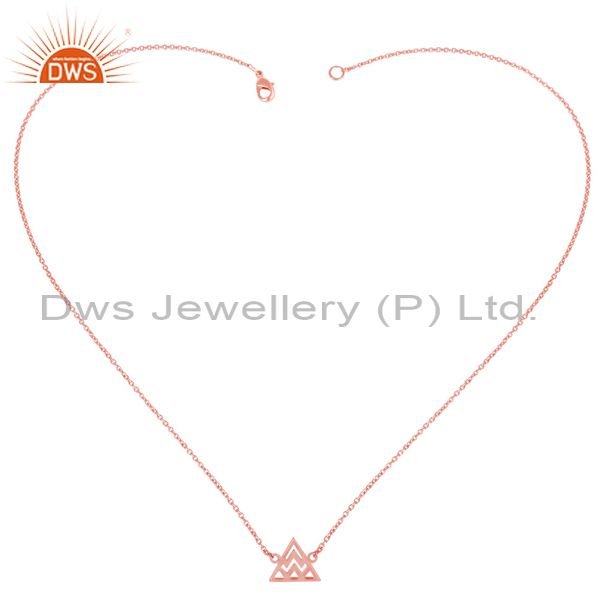 14K Rose Gold Plated Sterling Silver Handmade Art Trillion Style Chain Necklace
