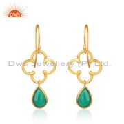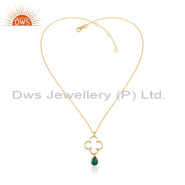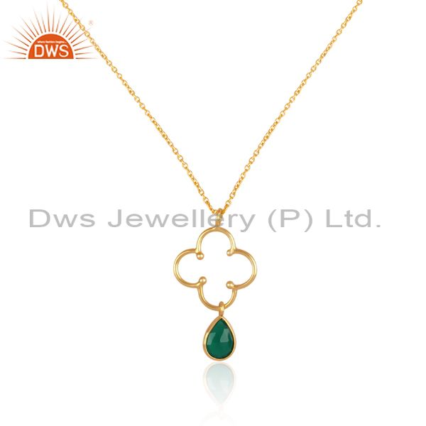 14K Yellow Gold Plated 925 Sterling Silver Green Onyx Chain Pendant