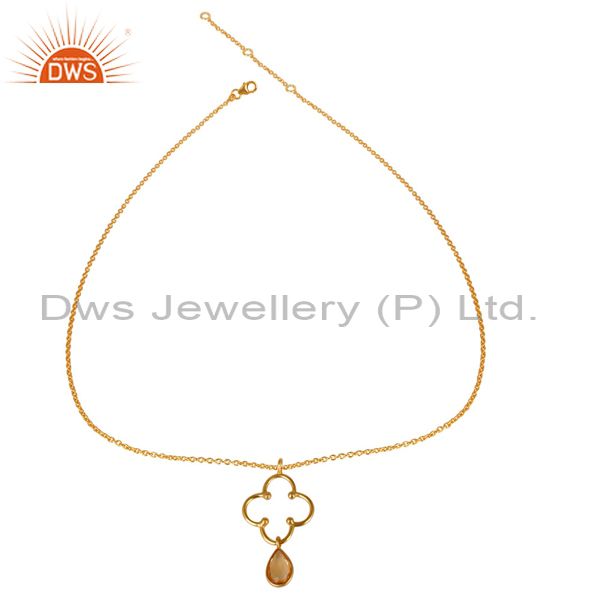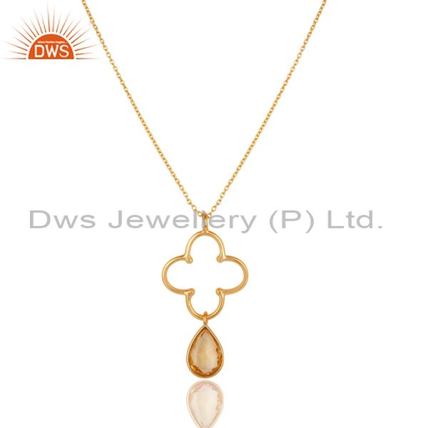 14K Yellow Gold Plated 925 Sterling Silver Handmade Citrine Chain Pendant