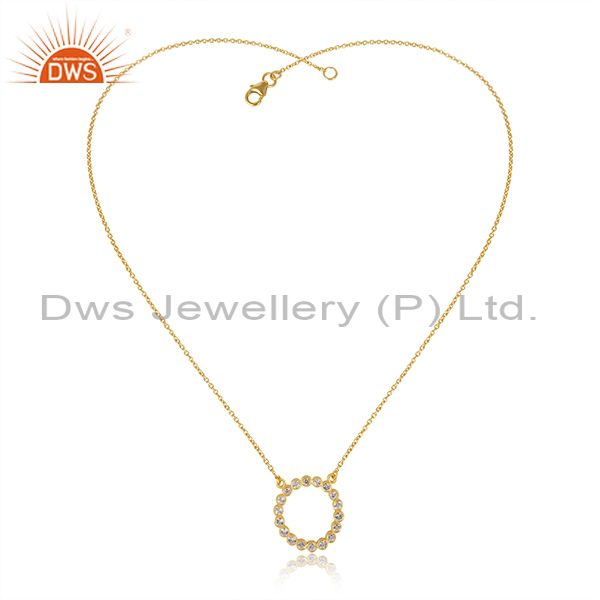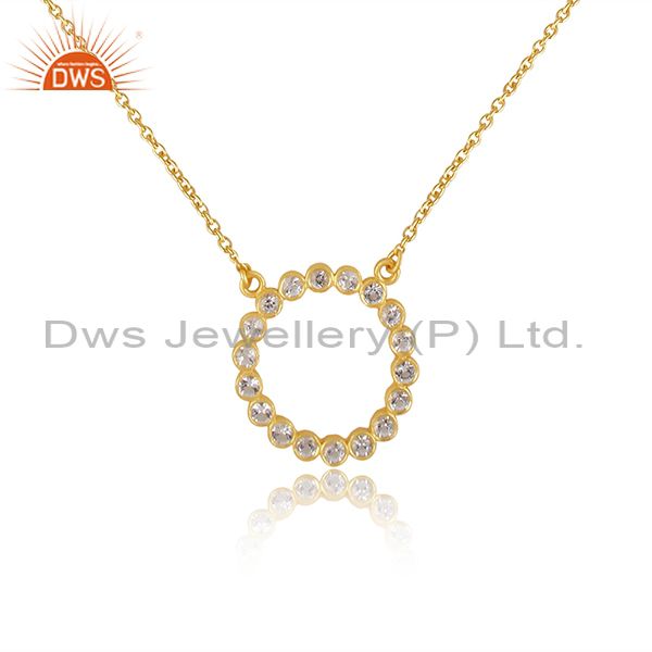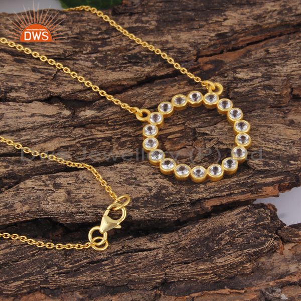 14K Yellow Gold Plated 925 Sterling Silver Handmade White Topaz Chain Pendant