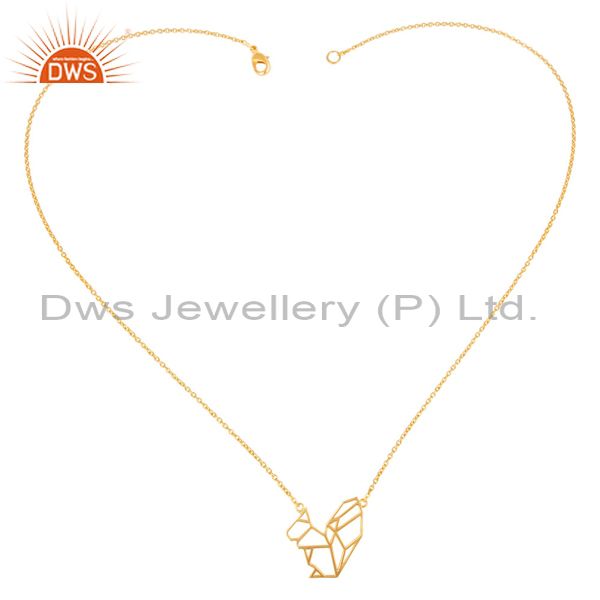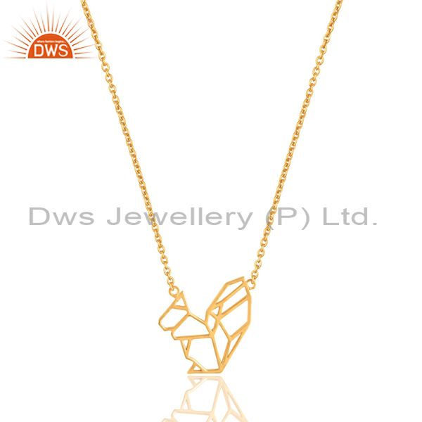 14K Yellow Gold Plated 925 Sterling Silver Handmade Zig Zag Style Chain Pendant