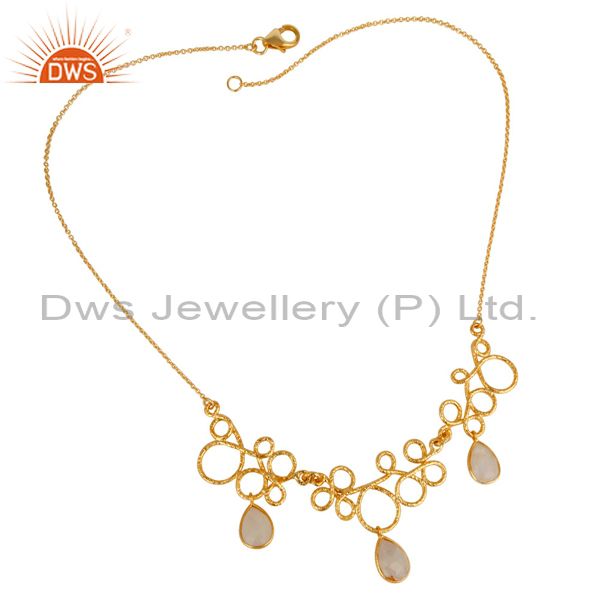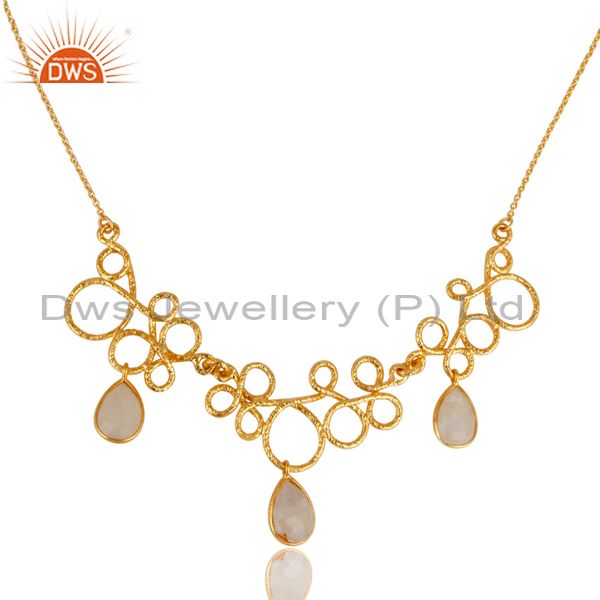 14K Yellow Gold Plated 925 Sterling Silver Rainbow Moonstone Gemstone Necklace
