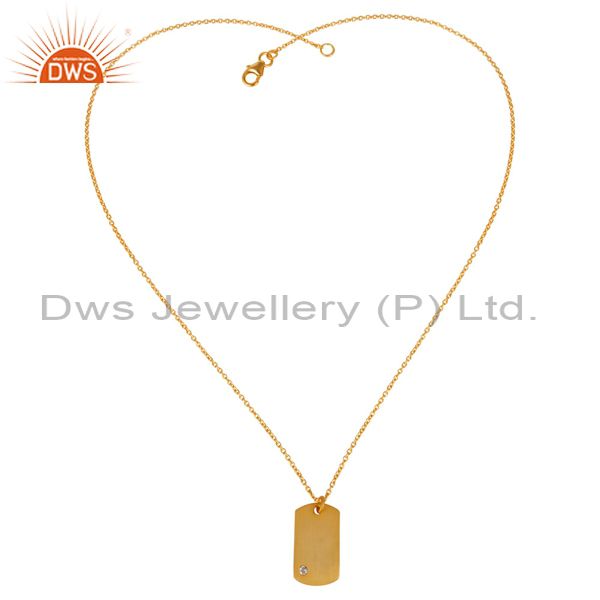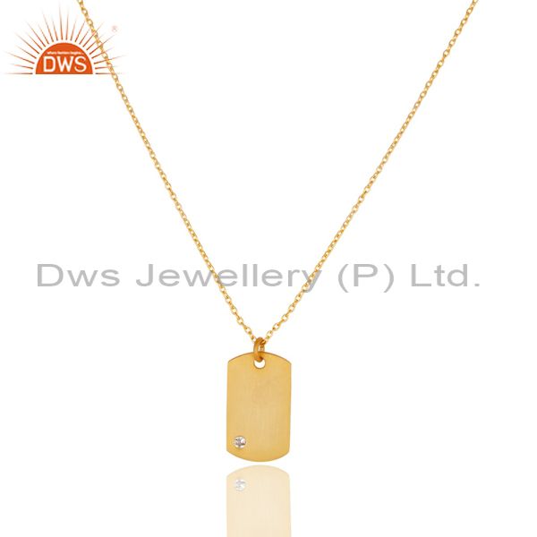 14K Yellow Gold Plated 925 Sterling Silver White Topaz Chain Pendant Jewelry