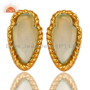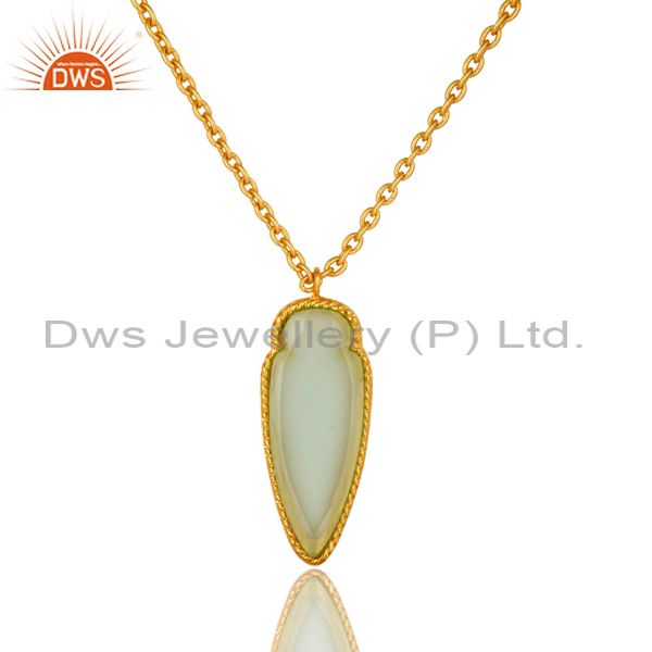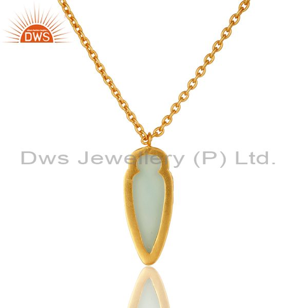 14K Yellow Gold Plated Brass Aqua Chalcedony Designer Pendant With Chain