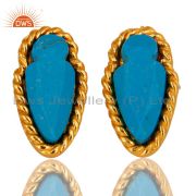 14K Yellow Gold Plated Brass Turquoise Gemstone Fashion Pendant With Chain