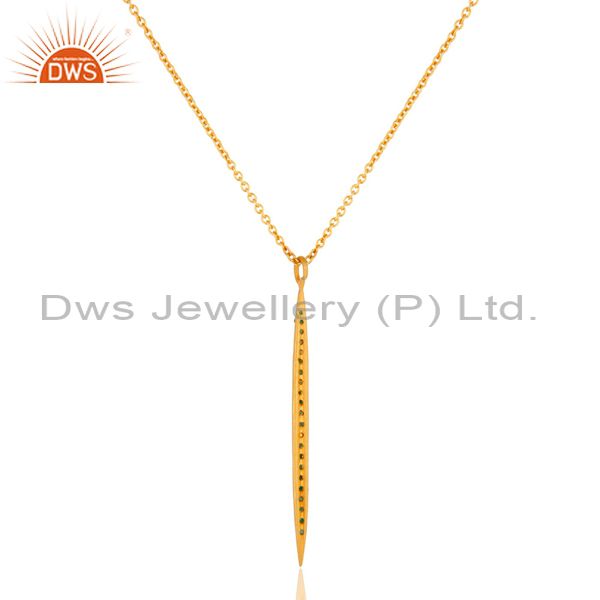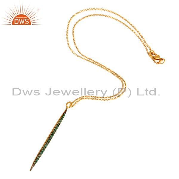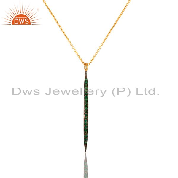 14K Yellow Gold Plated Handmade Round Cut Emerald Chain Brass Necklace Jewelry