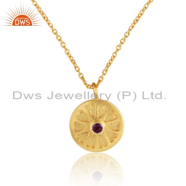 14K Yellow Gold Plated Sterling Silver Amethyst Gemstone Pendant With Chain