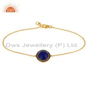 14K Yellow Gold Plated Sterling Silver Blue Aventurine And CZ Pendant With Chain